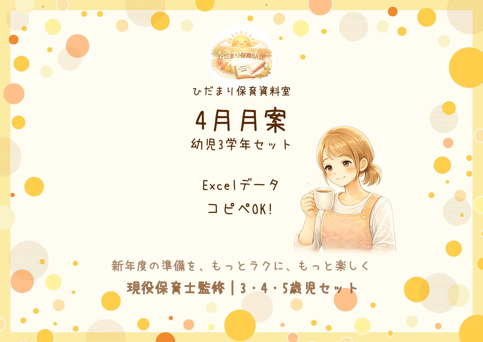 ・3歳児、4歳児、5歳児の4月月案(Excelデータ 各1枚)