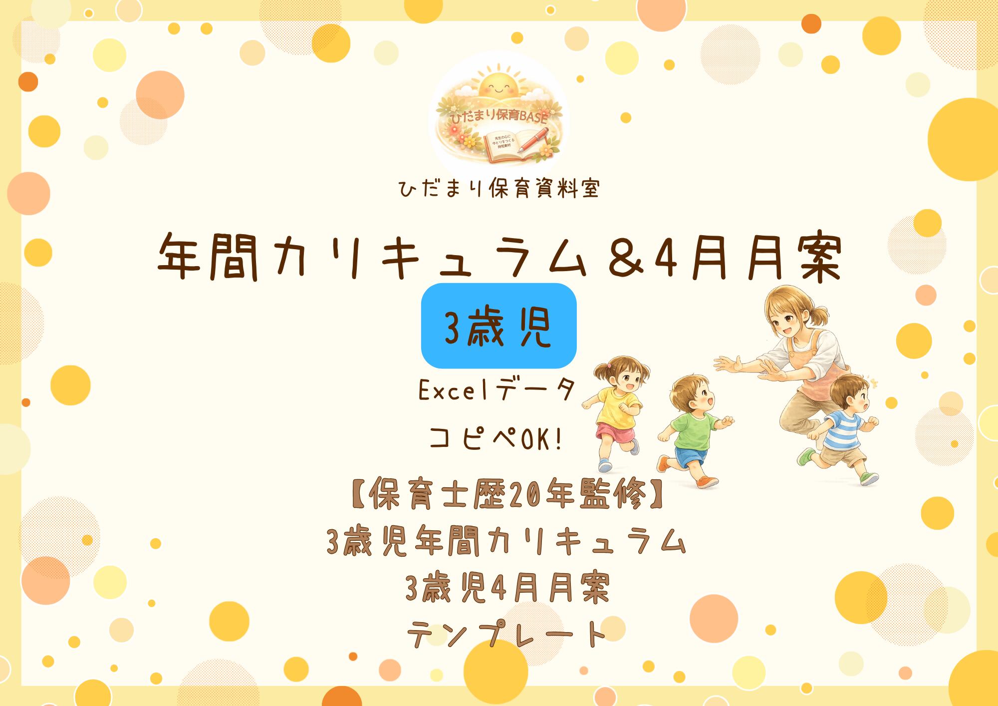 【3歳児セット】年間指導計画+4月月案テンプレート|新担任応援価格!事務時間を劇的に短縮