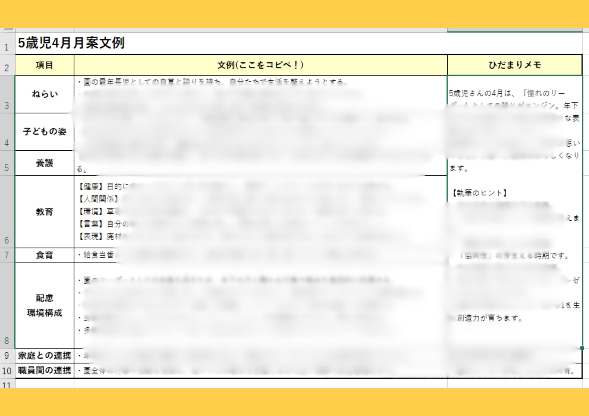 ☆本データは文例・ヒントとしてご活用ください。実際の保育では、目の前のお子様の姿や園の教育方針に合わせて適切に書き換えてご使用ください。