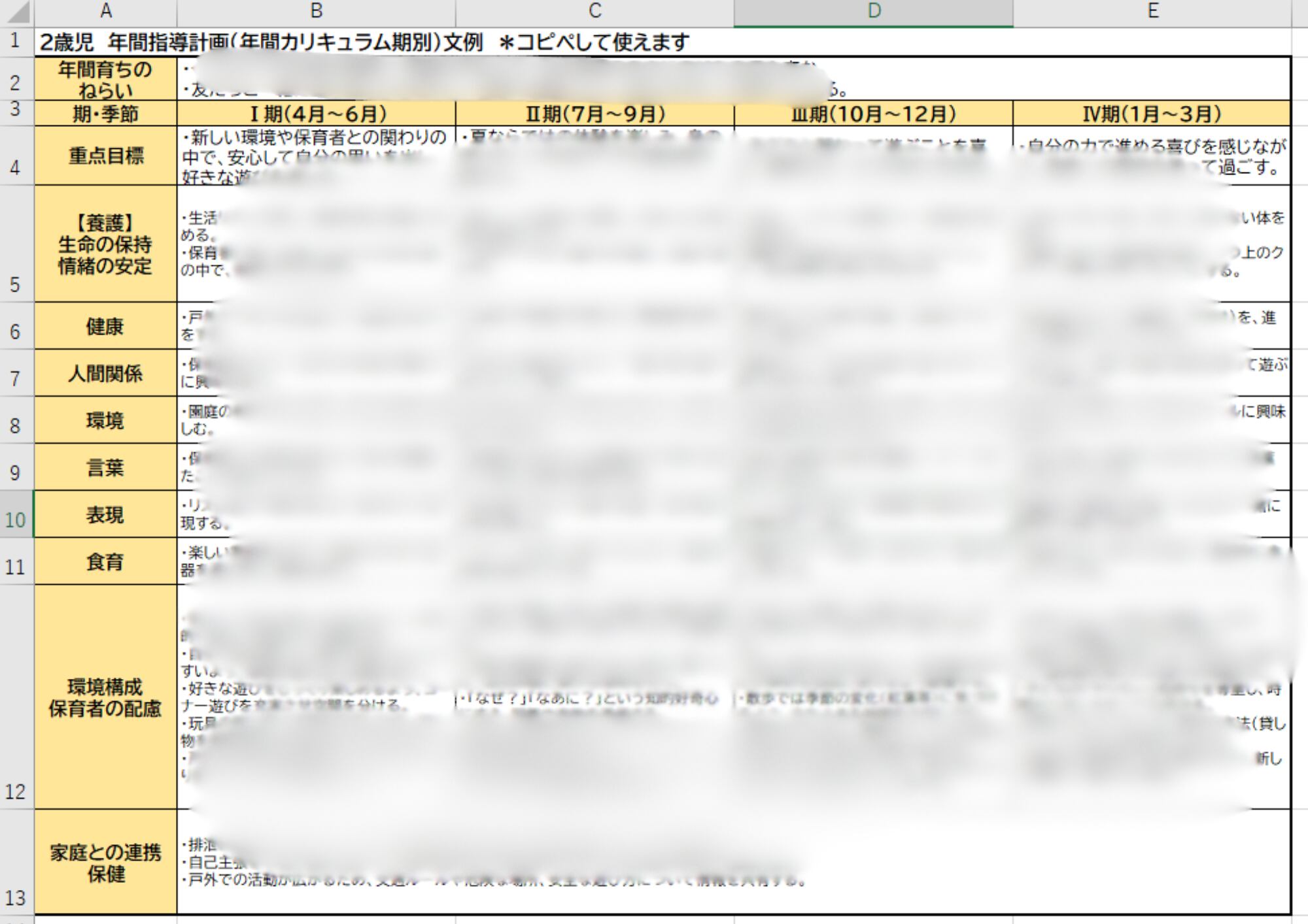 2歳児月案テンプレート(4月〜3月:計12カ月分)