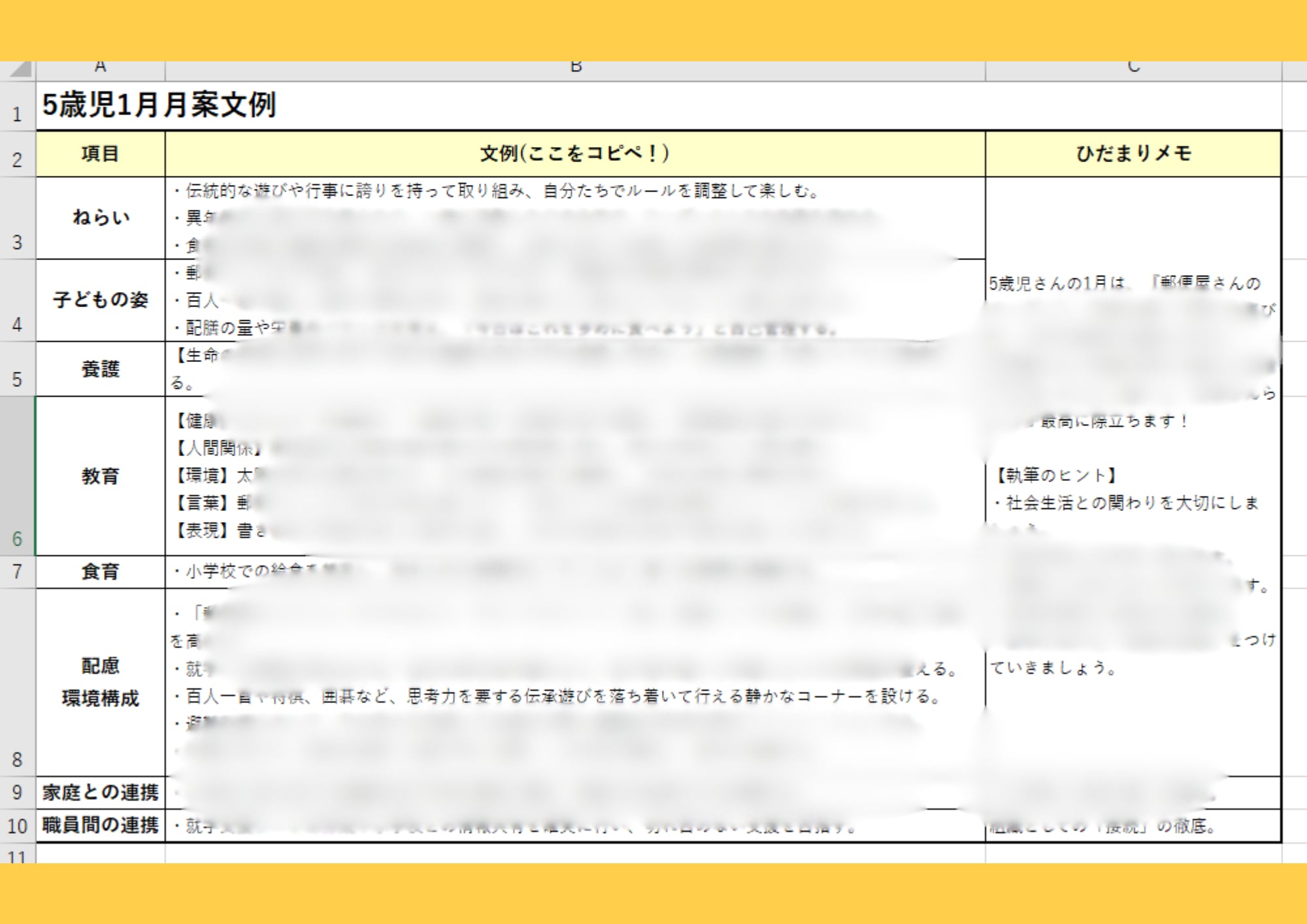 ☆本データは文例・ヒントとしてご活用ください。実際の保育では、目の前のお子様の姿や園の教育方針に合わせて適切に書き換えてご使用ください。