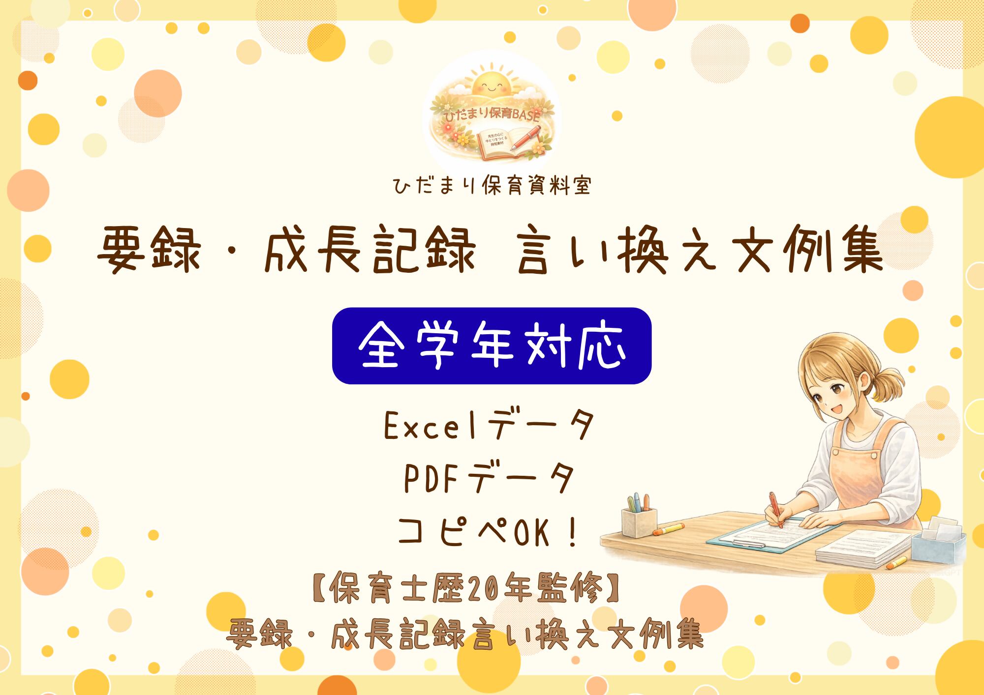 そんな現役保育士さんの切実な悩みを解決するために、20年の現場経験を持つ保育士ママが「日常の姿を、プロの文章に変換する」文例集を作成しました。
