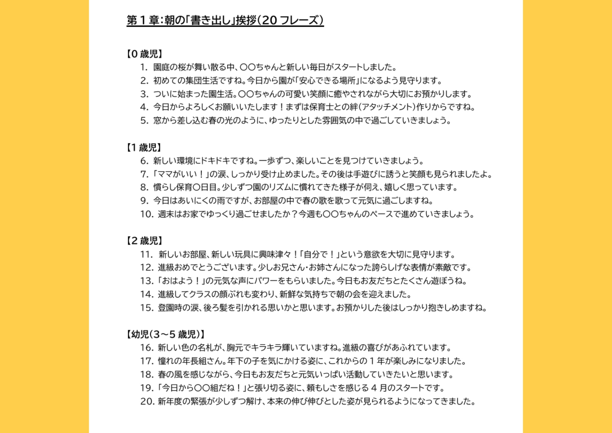 第2章:慣らし保育「涙と頑張り」の文例(年齢別30案)